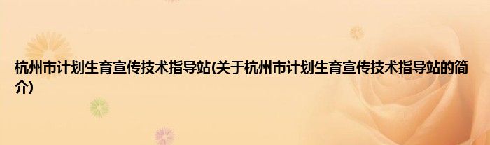 本文关于杭州市计划生育宣传技术指导站的简介就讲解完毕,希望对大家有所帮助。