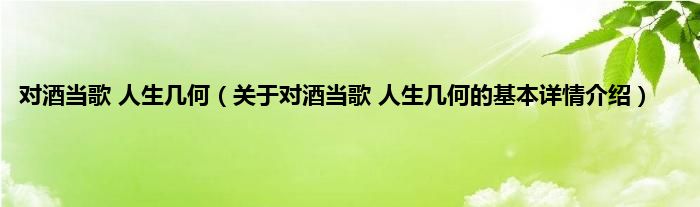 对酒当歌 人生几何(关于对酒当歌 人生几何的基本详情介绍)