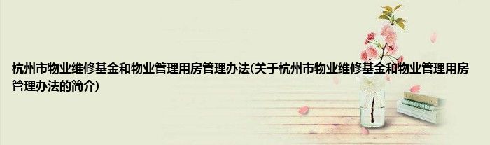 大家好,杭州市物业维修基金和物业管理用房管理办法,关于杭州市物业维修基金和物业管理用房管理办法的简介很多人还不知道,现在让我们一起来看看吧!