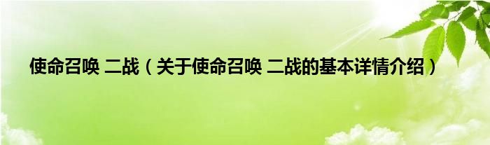 2、为《使命召唤》系列第14部主系列作品,也是继《使命召唤:战争世界》后再次将背景设定于第二次世界大战的作品。