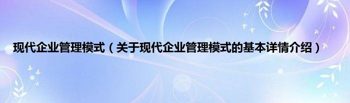 本文关于现代企业管理模式的基本详情介绍就讲解完毕,希望对大家有所帮助。