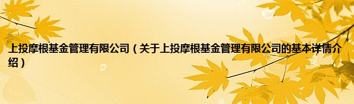 本文关于上投摩根基金管理有限公司的基本详情介绍就讲解完毕,希望对大家有所帮助。