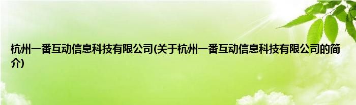 本文关于杭州一番互动信息科技有限公司的简介就讲解完毕,希望对大家有所帮助。