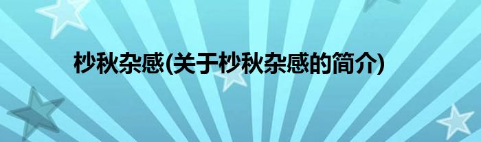 本文关于杪秋杂感的简介就讲解完毕,希望对大家有所帮助。