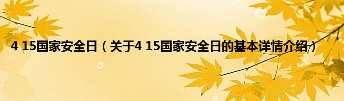 本文关于4 15国家安全日的基本详情介绍就讲解完毕,希望对大家有所帮助。