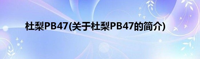 本文关于杜梨PB47的简介就讲解完毕,希望对大家有所帮助。