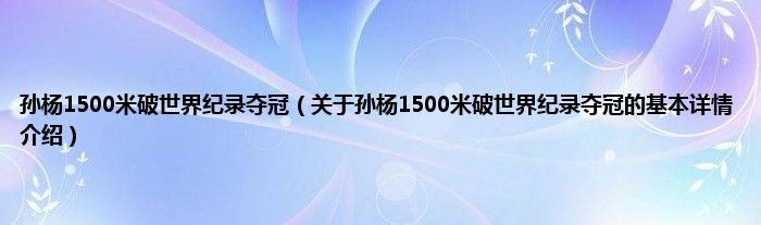 本文关于孙杨1500米破世界纪录夺冠的基本详情介绍就讲解完毕,希望对大家有所帮助。