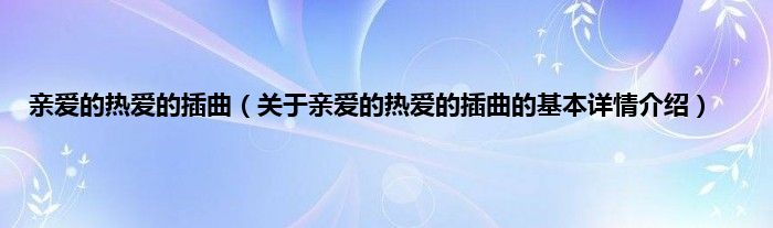 本文关于亲爱的热爱的插曲的基本详情介绍就讲解完毕,希望对大家有所帮助。