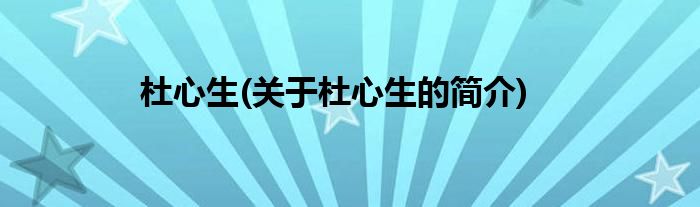 大家好,杜心生,关于杜心生的简介很多人还不知道,现在让我们一起来看看吧!