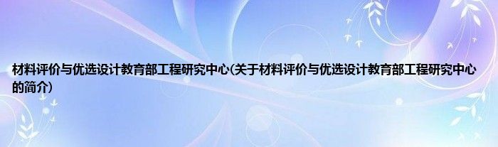 本文关于材料评价与优选设计教育部工程研究中心的简介就讲解完毕,希望对大家有所帮助。