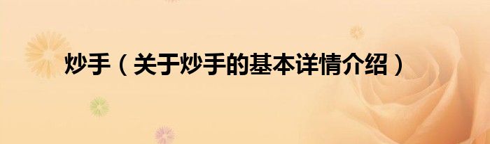 本文关于炒手的基本详情介绍就讲解完毕,希望对大家有所帮助。