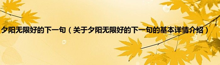 本文关于夕阳无限好的下一句的基本详情介绍就讲解完毕,希望对大家有所帮助。