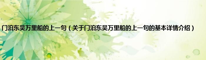 本文关于门泊东吴万里船的上一句的基本详情介绍就讲解完毕,希望对大家有所帮助。