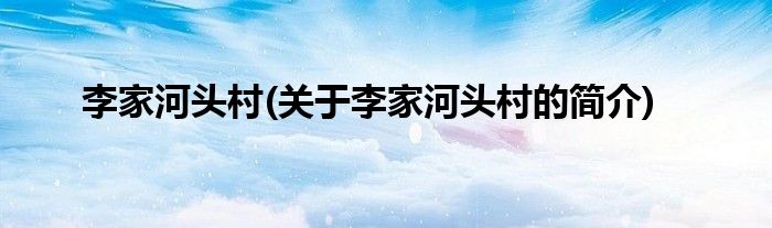 本文关于李家河头村的简介就讲解完毕,希望对大家有所帮助。