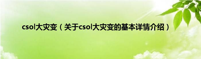本文关于csol大灾变的基本详情介绍就讲解完毕,希望对大家有所帮助。