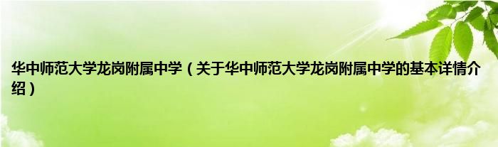 本文关于华中师范大学龙岗附属中学的基本详情介绍就讲解完毕,希望对大家有所帮助。