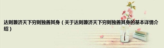 本文关于达则兼济天下穷则独善其身的基本详情介绍就讲解完毕,希望对大家有所帮助。