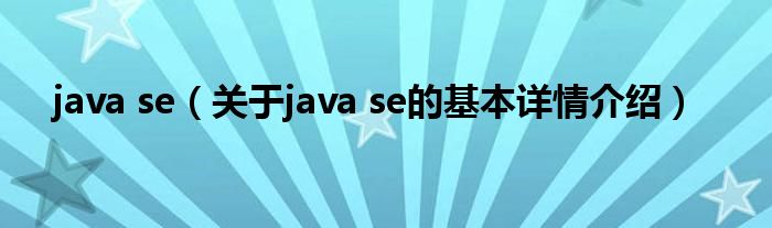 本文关于java se的基本详情介绍就讲解完毕,希望对大家有所帮助。