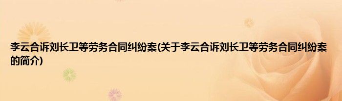 李云合诉刘长卫等劳务合同纠纷案(关于李云合诉刘长卫等劳务合同纠纷案的简介)