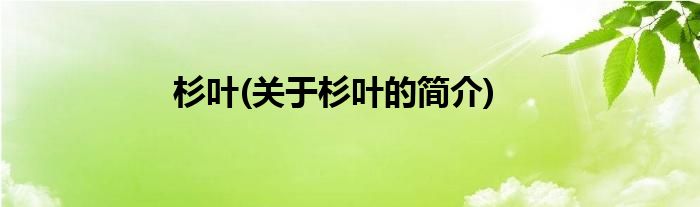 大家好,杉叶,关于杉叶的简介很多人还不知道,现在让我们一起来看看吧!