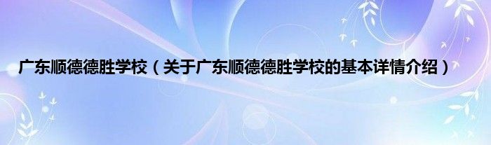 本文关于广东顺德德胜学校的基本详情介绍就讲解完毕,希望对大家有所帮助。