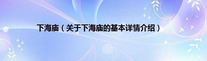 本文关于下海庙的基本详情介绍就讲解完毕,希望对大家有所帮助。