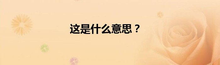 大家好,这是什么意思?很多人还不知道,现在让我们一起来看看吧!
