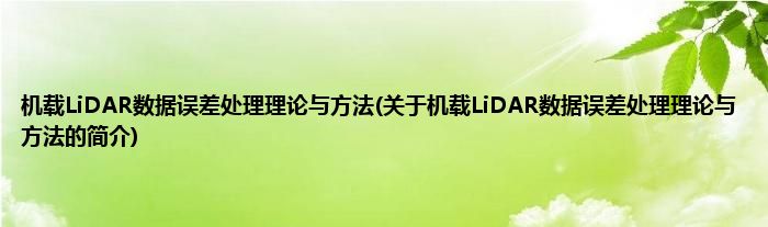 大家好,机载LiDAR数据误差处理理论与方法,关于机载LiDAR数据误差处理理论与方法的简介很多人还不知道,现在让我们一起来看看吧!