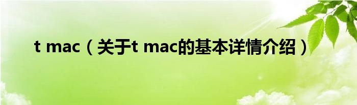 本文关于t mac的基本详情介绍就讲解完毕,希望对大家有所帮助。