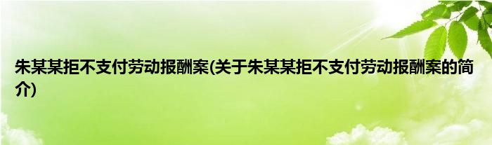 本文关于朱某某拒不支付劳动报酬案的简介就讲解完毕,希望对大家有所帮助。