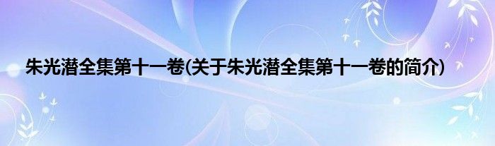 大家好,朱光潜全集第十一卷,关于朱光潜全集第十一卷的简介很多人还不知道,现在让我们一起来看看吧!