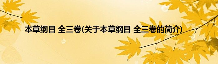 本文关于本草纲目 全三卷的简介就讲解完毕,希望对大家有所帮助。