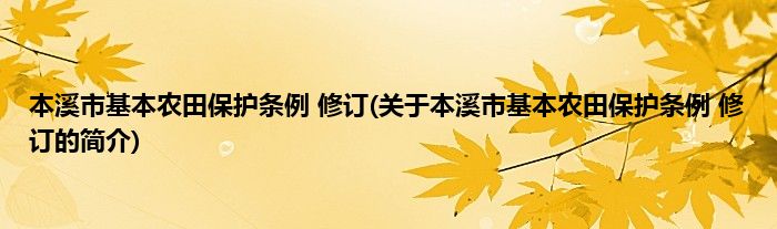 本溪市基本农田保护条例 修订(关于本溪市基本农田保护条例 修订的简介)