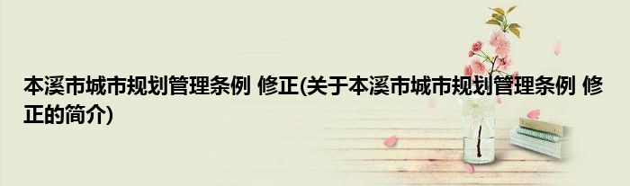 本溪市城市规划管理条例 修正(关于本溪市城市规划管理条例 修正的简介)