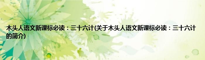 本文关于木头人语文新课标必读:三十六计的简介就讲解完毕,希望对大家有所帮助。
