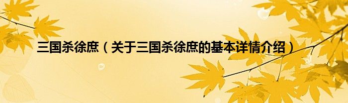 本文关于三国杀徐庶的基本详情介绍就讲解完毕,希望对大家有所帮助。