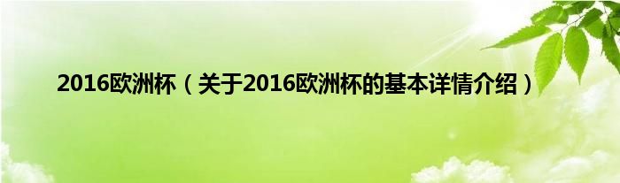 本文关于2016欧洲杯的基本详情介绍就讲解完毕,希望对大家有所帮助。