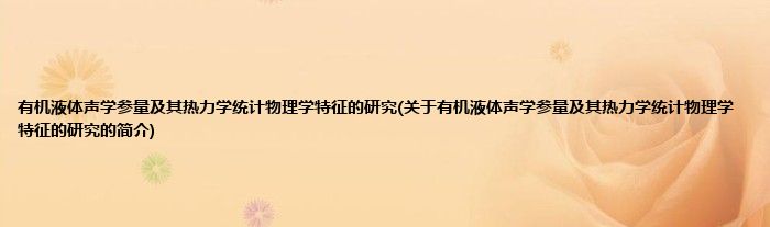 本文关于有机液体声学参量及其热力学统计物理学特征的研究的简介就讲解完毕,希望对大家有所帮助。
