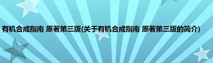 本文关于有机合成指南 原著第三版的简介就讲解完毕,希望对大家有所帮助。