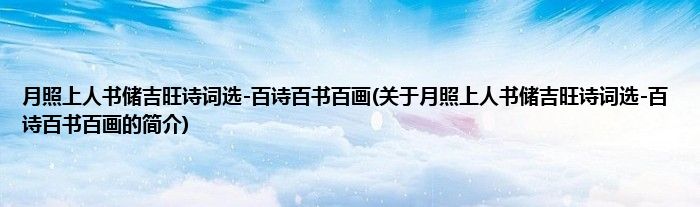 本文关于月照上人书储吉旺诗词选-百诗百书百画的简介就讲解完毕,希望对大家有所帮助。
