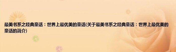 本文关于最美书系之经典童话:世界上最优美的童话的简介就讲解完毕,希望对大家有所帮助。
