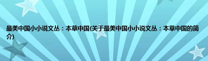 本文关于最美中国小小说文丛:本草中国的简介就讲解完毕,希望对大家有所帮助。