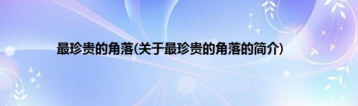 本文关于最珍贵的角落的简介就讲解完毕,希望对大家有所帮助。