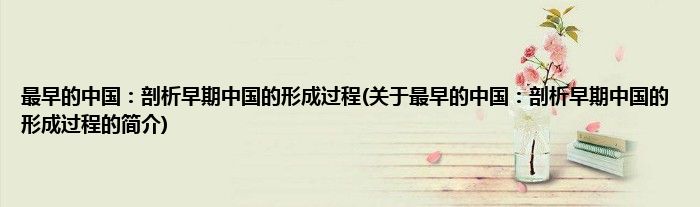 大家好,最早的中国:剖析早期中国的形成过程,关于最早的中国:剖析早期中国的形成过程的简介很多人还不知道,现在让我们一起来看看吧!