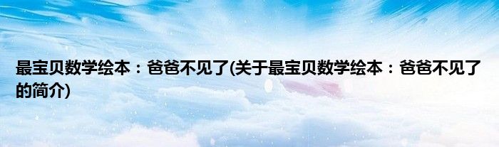 本文关于最宝贝数学绘本:爸爸不见了的简介就讲解完毕,希望对大家有所帮助。
