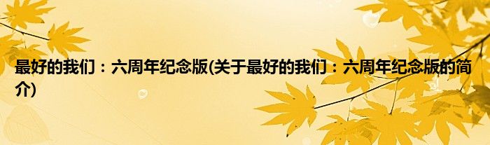 本文关于最好的我们:六周年纪念版的简介就讲解完毕,希望对大家有所帮助。