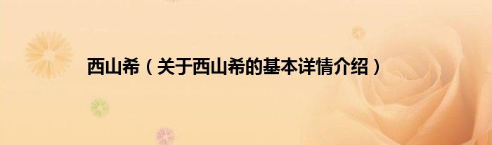 本文关于西山希的基本详情介绍就讲解完毕,希望对大家有所帮助。