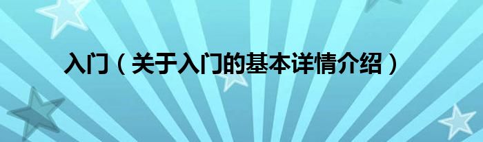 本文关于入门的基本详情介绍就讲解完毕,希望对大家有所帮助。