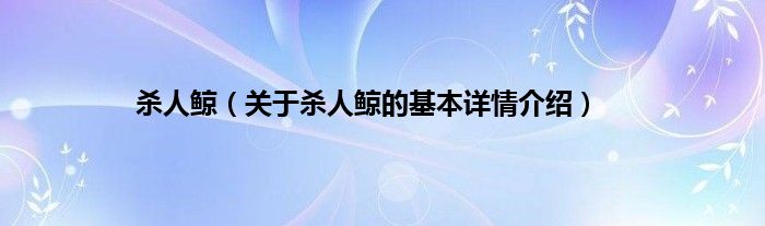 本文关于杀人鲸的基本详情介绍就讲解完毕,希望对大家有所帮助。