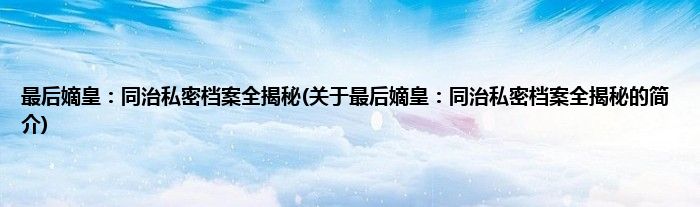 大家好,最后嫡皇:同治私密档案全揭秘,关于最后嫡皇:同治私密档案全揭秘的简介很多人还不知道,现在让我们一起来看看吧!